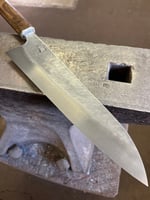 2092 (52100) carbon steel, walnut burl and sterling silver handle.